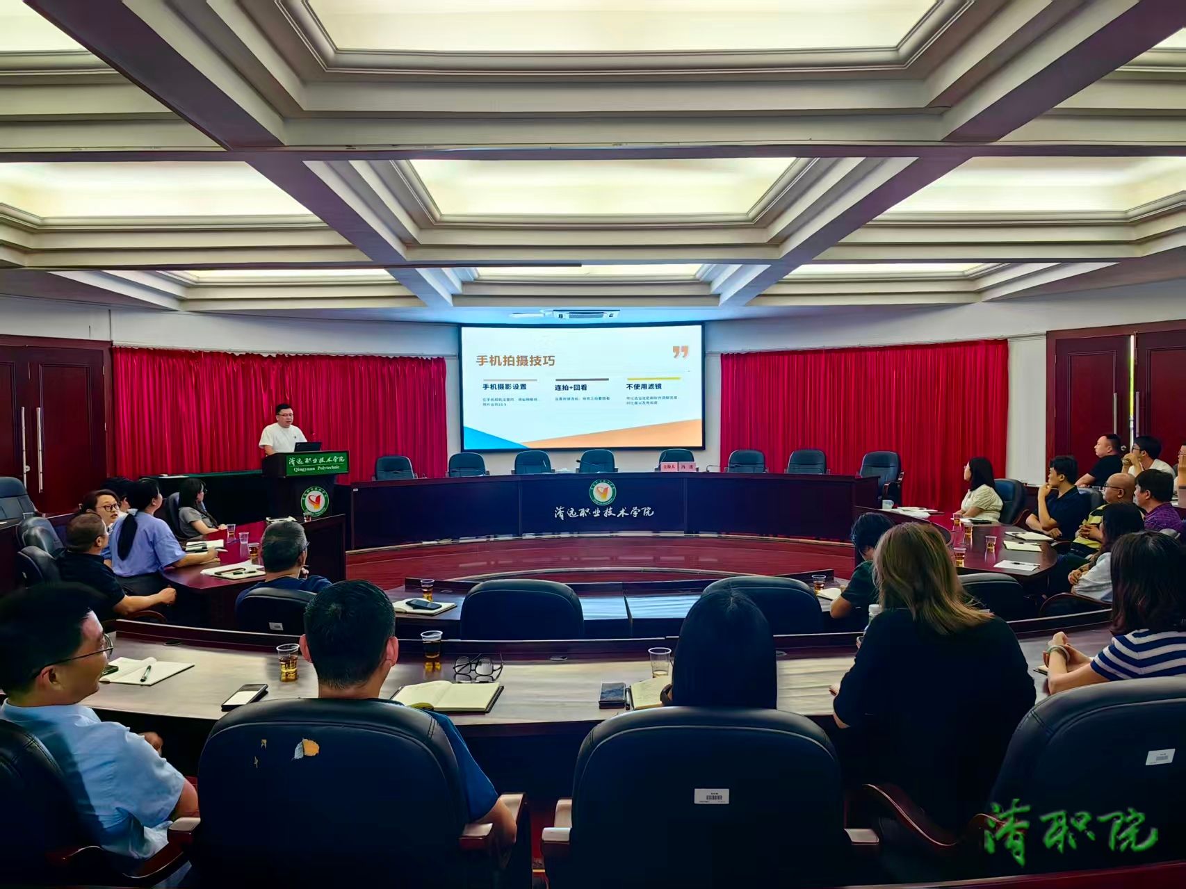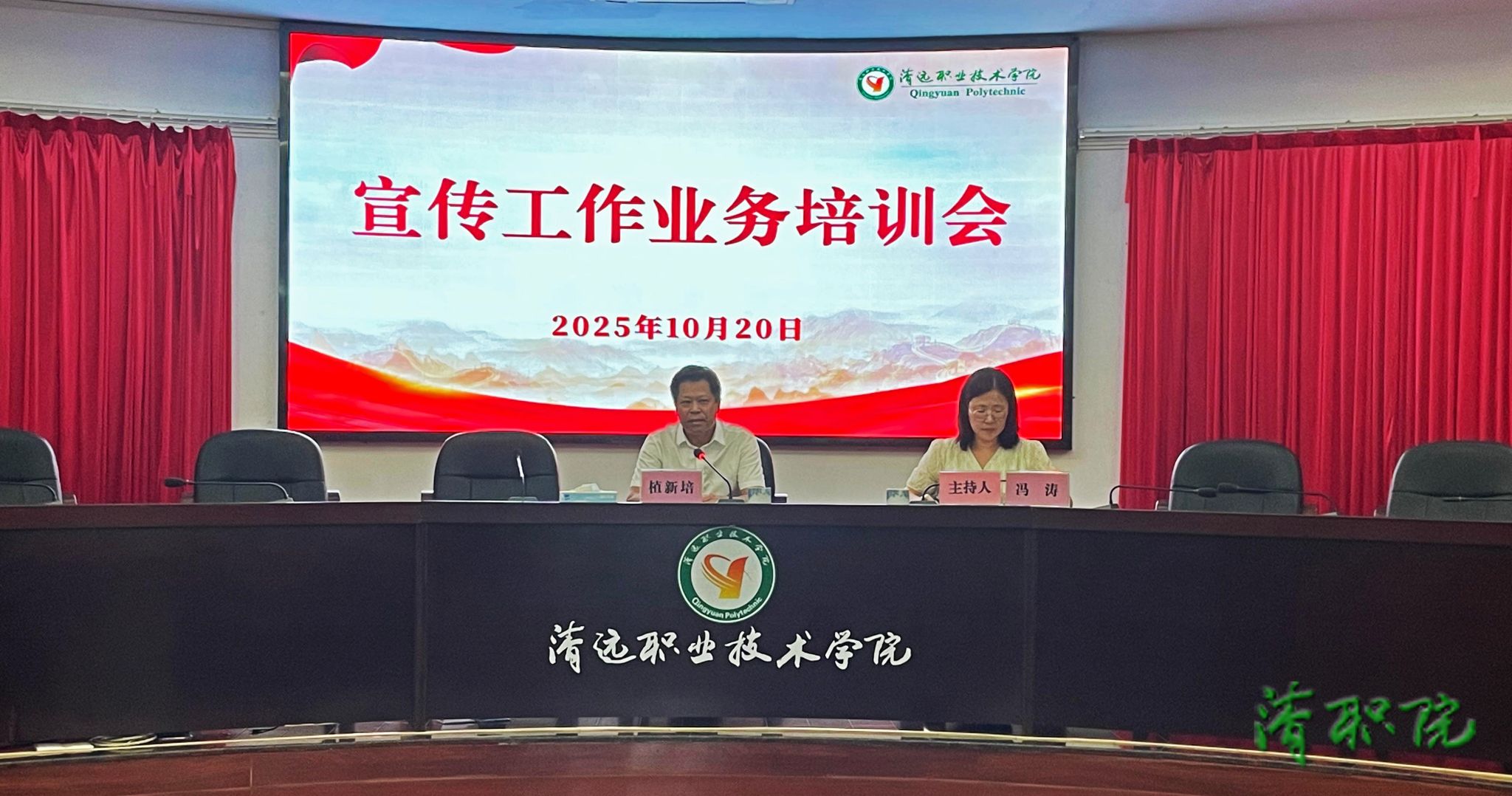 10月20日下午,清远职业技术学院组织开展了全院宣传工作业务专题培训,旨在提升宣传队伍专业素养,规范宣传工作流程,筑牢意识形态安全防线,为学院高质量发展营造良好舆论氛围。学院党委副书记植新培出席并讲话,党政办公室主任冯涛主持会议,各党总支、直属党支部宣传委员,二级部门信息员、二级学院办公室主任及部门网站、新媒体公众号负责人等近50人参加培训。