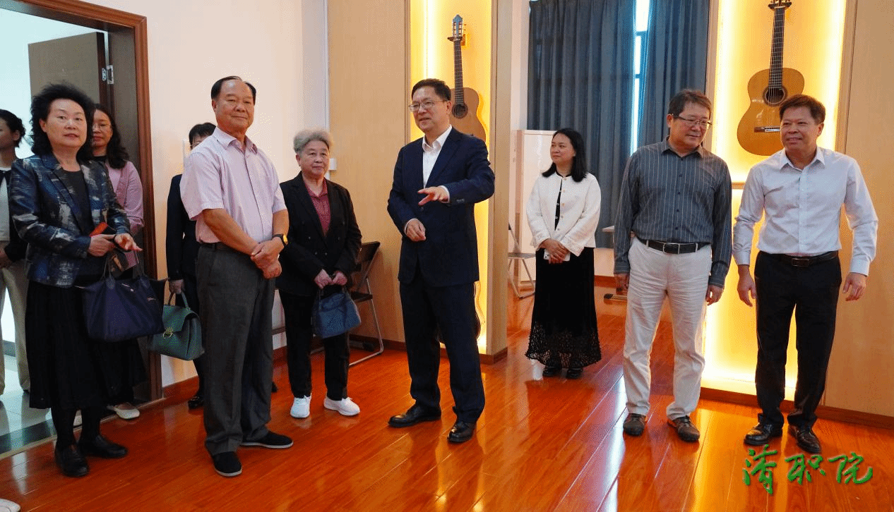 市关工委领导一行实地参观了玛丁尼国际吉他产业学院、师生综合服务中心、主校门建设工地及培训公寓餐厅等具有代表性的场所,高度肯定了我院在办学特色、人才培养和校园基础设施建设方面取得的明显成效。