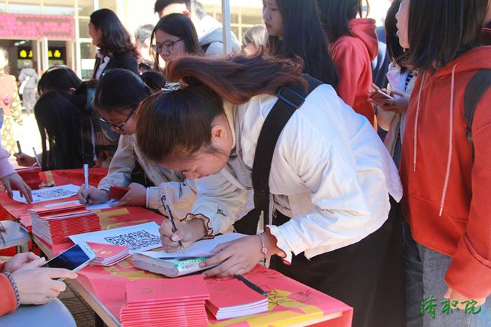 4日中午,学生社团方圆法制社在学院第一饭堂桥头派发宪法宣传册,组织师生开展 “宪法伴我行”签名活动,学院领导班子成员带头参加签名。
