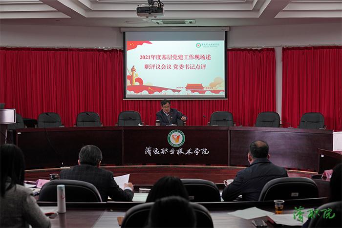 学院党委书记林海龙对各基层党组织的述职情况进行了逐一点评,他认为,2021年度学院各基层党组织的党建工作开展得比较扎实,比去年有较大的提升。一是党建主责主业全面落实。大家都能紧扣学懂弄通做实习近平新时代中国特色社会主义思想、党史学习教育、推动基层党组织建设、履行党风廉政建设第一责任人责任、履行意识形态工作责任制等重点内容,贯彻落实新时代党建工作总要求到位。二是理论武装走深走实。理论学习的形式有创新,形式多样,理论学习扎实,贯彻落实“第一议题”学习制度到位,开展各级各类党建活动载体多样、内涵丰富。三是基层党组织组织力得到进一步提升。基层党组织的政治功能和群众组织力得到提升,功能和作用逐步显现。四是党建引领学院高质量发展取得良好成效。同时,林海龙提出了四点要求:一是要加强思想理论武装,提高政治站位。坚决拥护“两个确定”,不断增强“四个意识”,坚定“四个自信”,做到“两个维护”。二是要持续加强党的领导和党的建设。全面落实新修订的《中国共产党普通高等学校基层组织工作条例》《中国共产党支部工作条例(试行)》、新一轮三年行动计划,不断完善党的组织体系、制度体系、工作机制和运行机制,强化党建品牌和特色亮点培育。三是要坚持不懈推动党史学习教育常态化长效化。用好“三会一课”“主题党日”等组织制度,发挥思政课程和课程思政渠道作用,用好红色资源教育师生,推动党史学习教育进教材、进课堂、进头脑。推动形成“我为群众办实事”实践活动长效机制。四是推动党建工作再上新台阶。创新工作举措,进一步增强党建活动的吸引力和实效性。